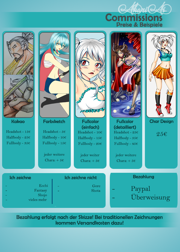 3. Bist du mit dem Preis einverstanden, fertige ich eine Skizze an. Gefällt dir diese, überweist du den Betrag auf mein Konto oder per Paypal.